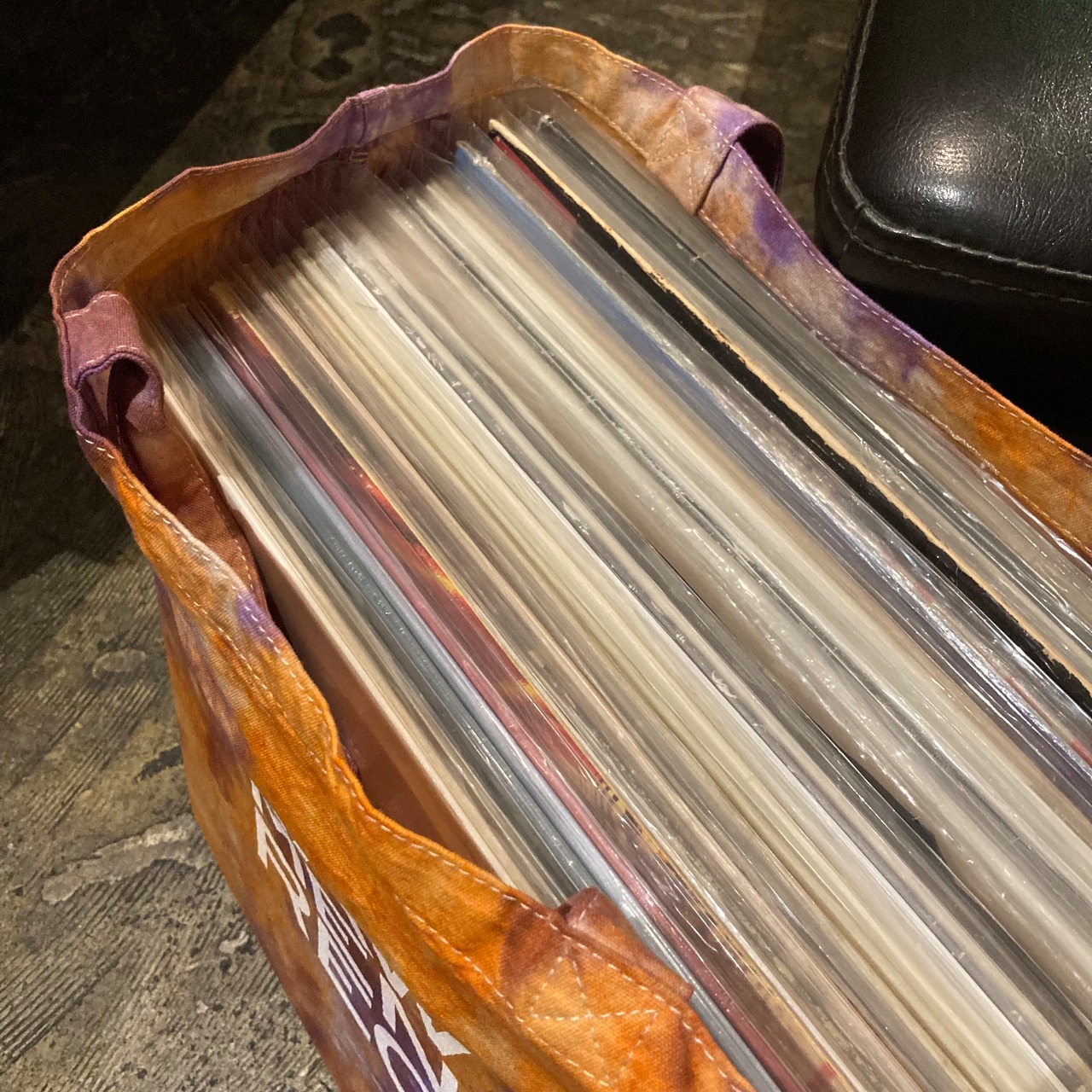 MC、DJにトラックメイクまでマルチに活躍するPSYPAPAによるタイダイ染めブランド “FAST CAR”謹製レコードバッグ。12inchコード約50枚入ります。1点1点の個性が光る、手染めならではのサイケデリックトート。